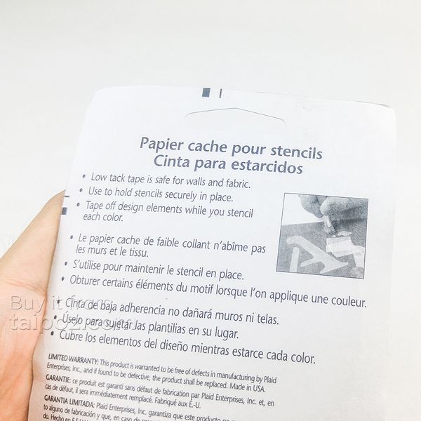 • Băng keo giấy chuyên dùng dán miếng stencil. Keo dễ lột và không làm hỏng phần màu đã vẽ bên dưới.