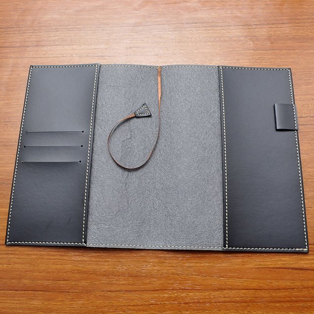 • Gia công tinh xảo với đường chỉ may tỉ mỉ trên chất liệu da PU cao cấp. Mặt trong có khe cài namecard + dây đánh dấu trang + cài bút.