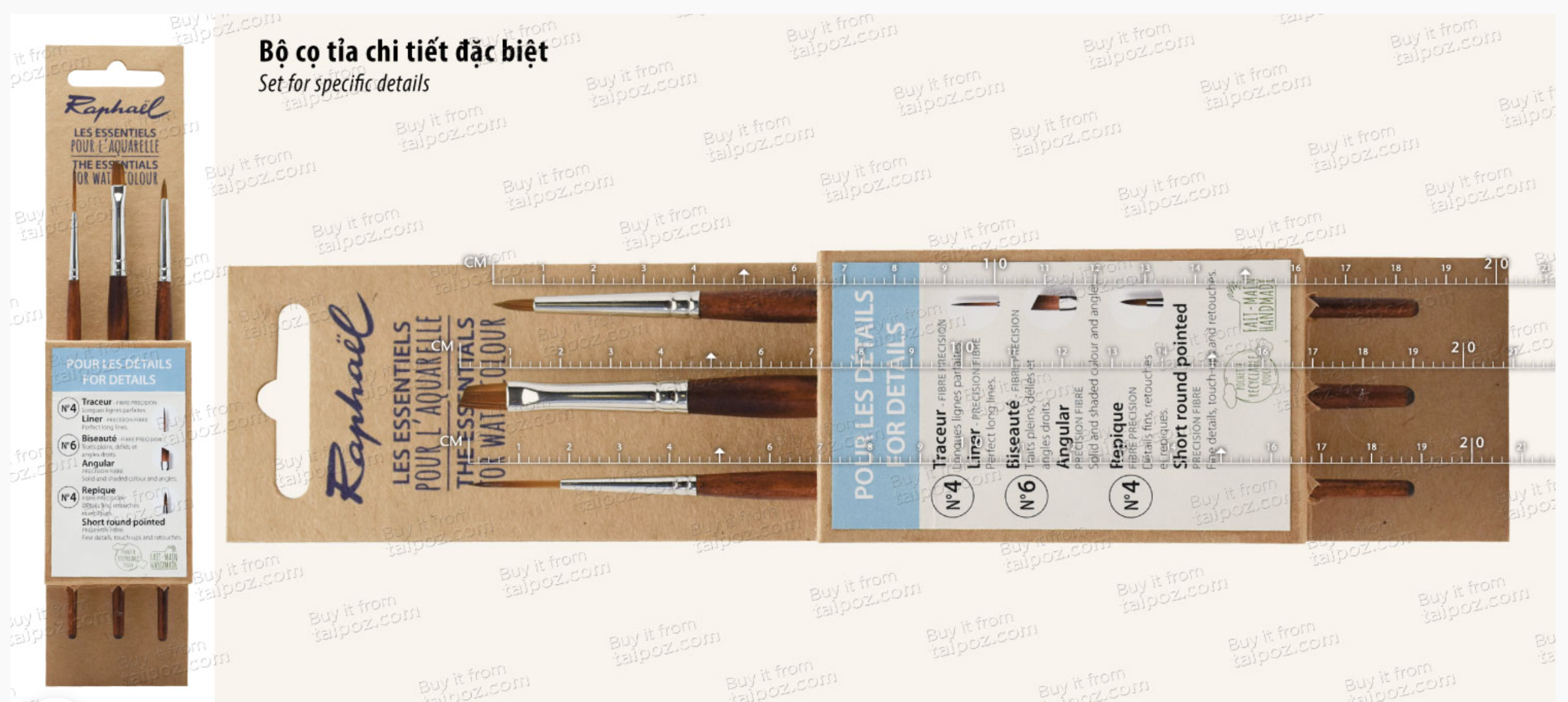 • Hiểu được sự khó khăn trong việc lựa chọn kích cỡ cọ vẽ phù hợp, Raphael đã cho ra mắt dòng cọ bộ tiện dụng, đáp ứng các kỹ thuật vẽ riêng biệt. Người học vẽ màu nước sẽ không còn cảm thấy khó khăn trong việc chọn cọ nữa.