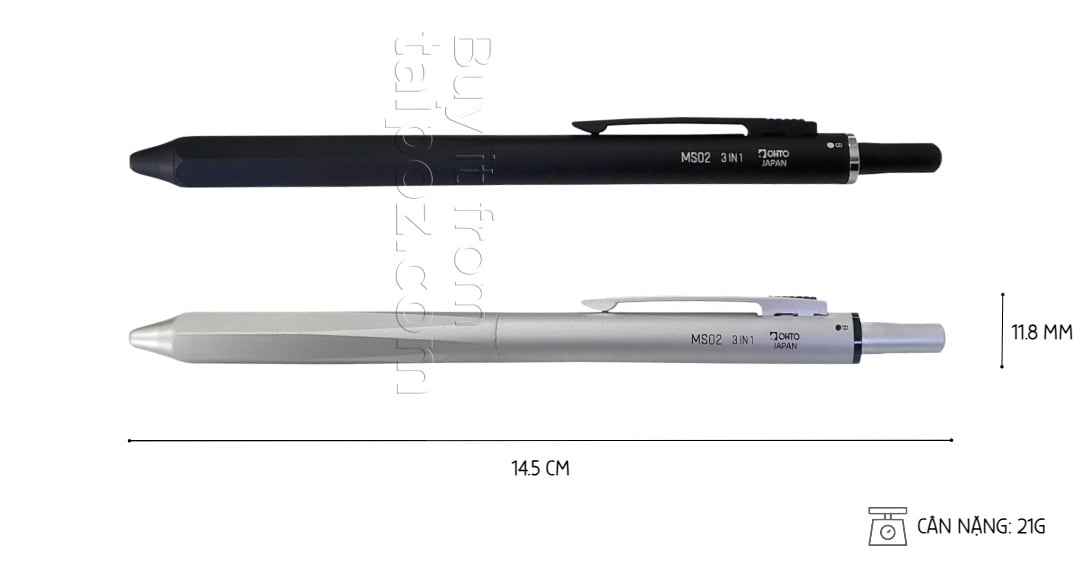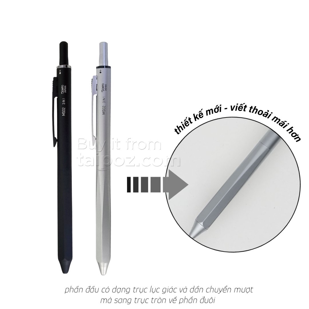 • Là phiên bản mới nhất của dòng bút đa năng Ohto Multi. MS02, được cải tiến về thiết kế, khi tập trung vào cảm giác cầm nắm bút thoải mái và hiệu quả cao nhất có thể. Thân bút được thiết kế với phần đầu có dạng trục lục giác và dần chuyển mượt mà sang trục tròn về phần đuôi. Với thiết kế này, cây bút tạo sự ấn tượng thẩm mỹ và cảm giác ổn định rất tốt khi cầm trên tay.