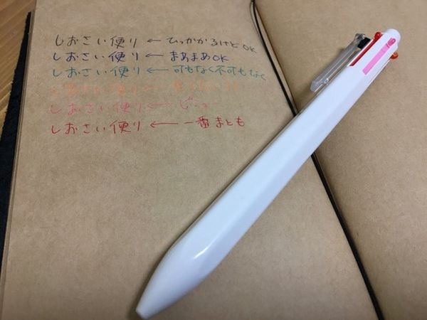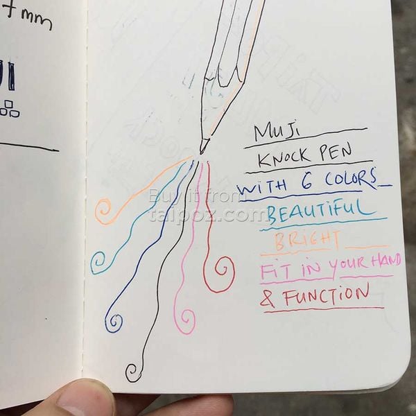 • Bút bi Muji rất đặc biệt vì có tới 6 ruột bấm khác màu: Black · Red · Pink · Orange · Light Blue · Blue. Bút viết ra nét 0.7mm, thích hợp cho viết hoặc ký tên.