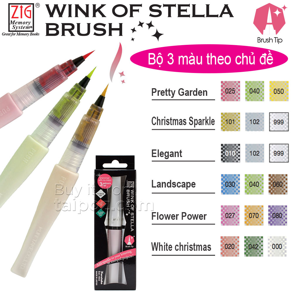 Bút kim tuyến ZIG Wink of Stella Brush, bộ 3 cây
