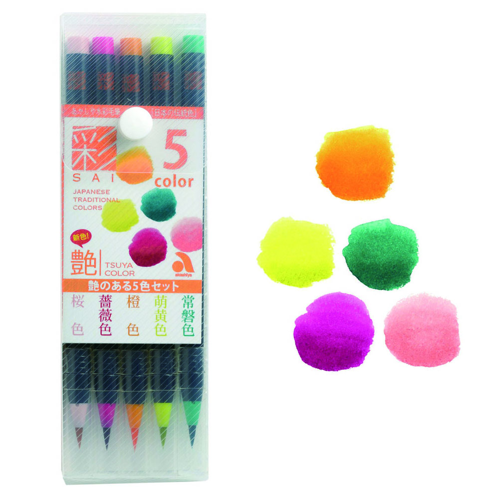 Bút lông vẽ màu nước Akashiya Sai, bộ 5 màu NEW