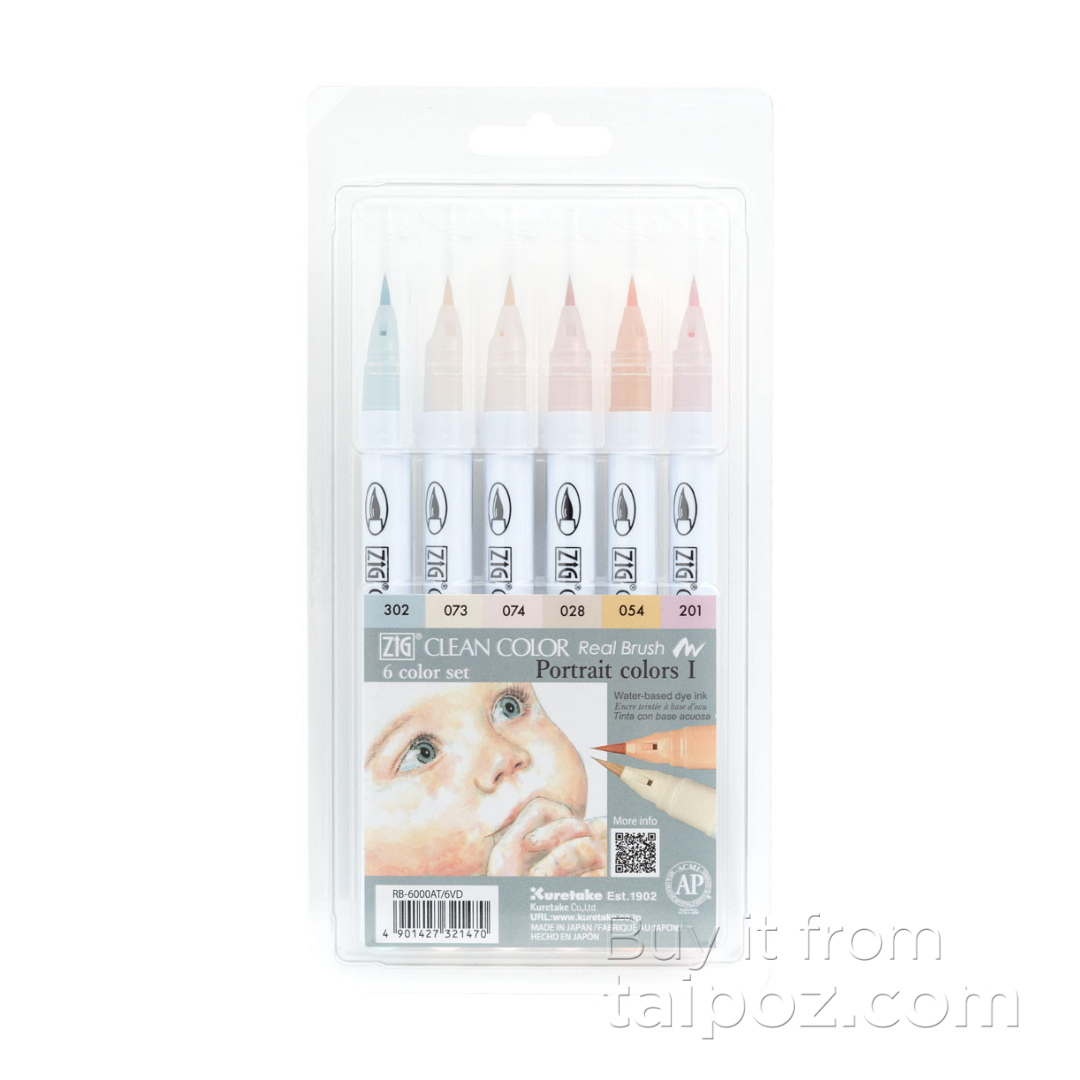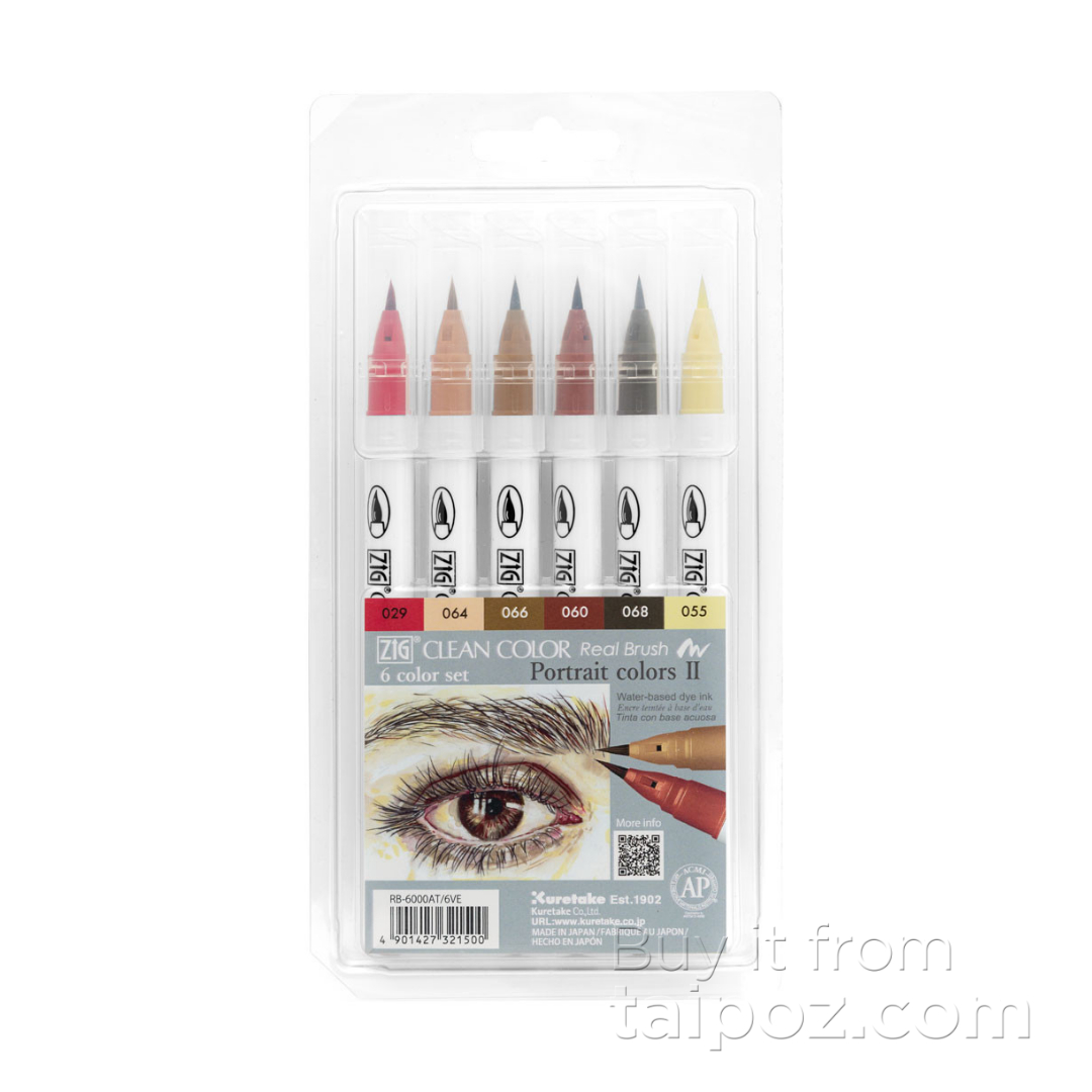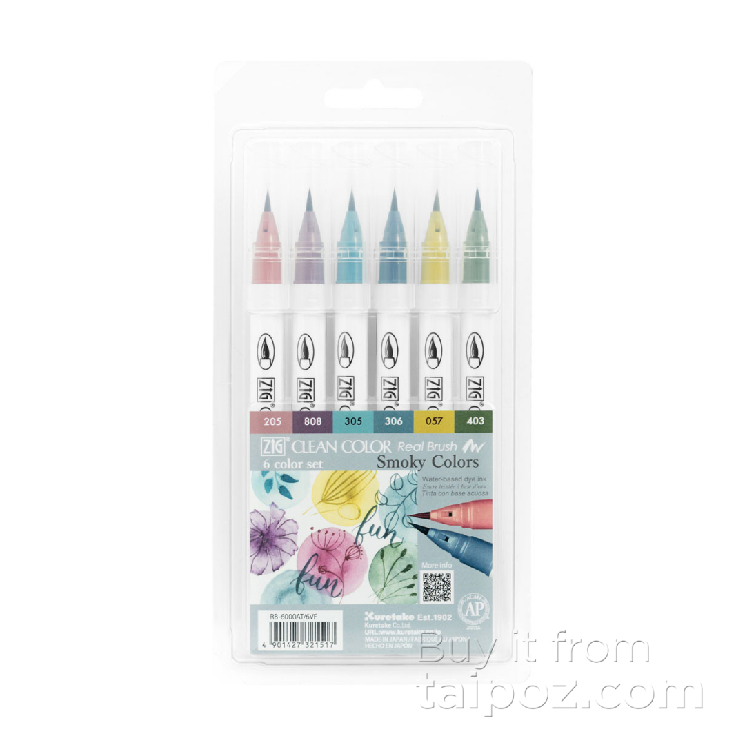 Bút lông ZIG Clean Color Real Brush, bộ 6 màu chủ đề