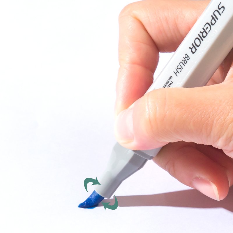 • Marker gốc cồn, một đầu brush, một đầu nét broad , dùng cho mọi nhu cầu vẽ marker. Khả năng đặc biệt của bút là lên màu trọn vẹn trong 01 lần tô, nên màu tô đều, mịn và không bị chồng nét. Lưu ý: Bút sẽ không dành cho người vẽ thích màu marker lên tông từ từ.