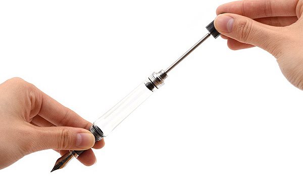 • Cắm bút vào lọ mực rồi kéo đẩy pit-tông 2-3 lần để hút mực vào bút.