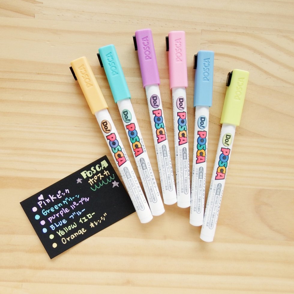 - Giấy: Bút Uni Posca vẽ được trên mọi loại giấy như giấy can, giấy in ảnh, bìa cứng, giấy carton. Màu không thấm qua mặt kia của giấy. Nếu được phủ thêm sơn bóng, màu sẽ càng đẹp hơn. Ứng dụng vào: Lồng đèn, thiệp pop-up, thiệp hoa, mô hình giấy, mặt nạ giấy, vẽ pop art, vẽ manga…