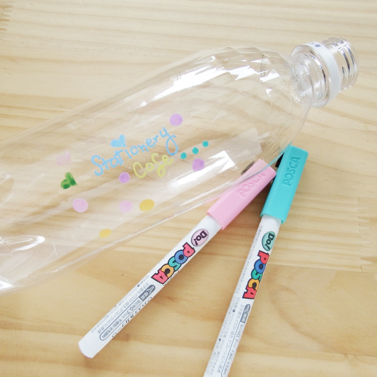 • Nhựa: Có thể vẽ trực tiếp bút Uni Posca lên các bề mặt nhựa như đề can hoặc decal dán áo thun. Màu sẽ khô hơi lâu hơn một chút khi vẽ trên các chất liệu này nên cần chú ý không bôi qua màu trước khi nó khô hoàn toàn.