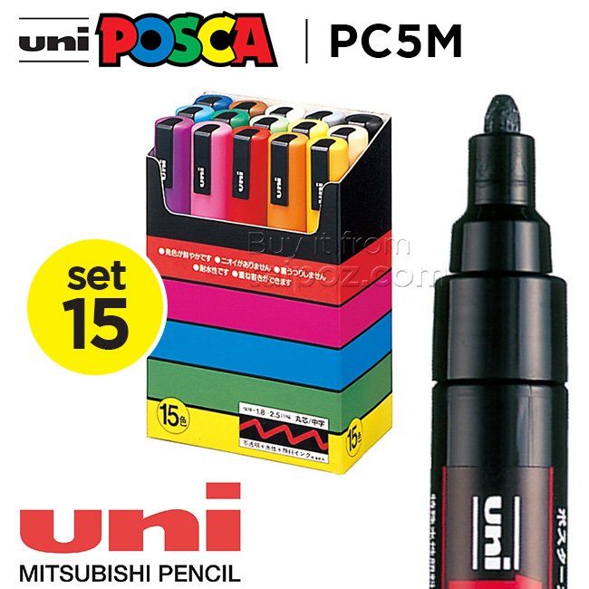 Bút vẽ trên nhiều chất liệu Uni Posca PC5M - bộ 15 cây