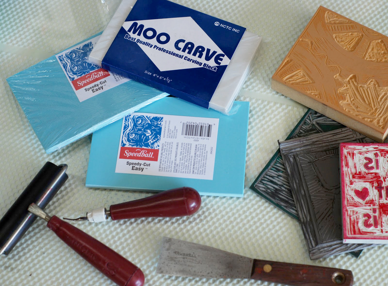• Dùng bộ dụng cụ khắc Speedball hoặc bất cứ bộ dao khắc nào để tạo hình.