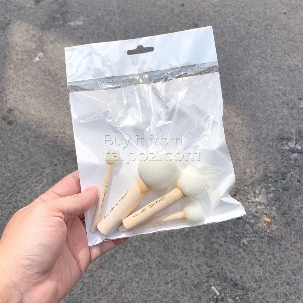 • Cọ chất liệu mốp polyfoam, lý tưởng để bôi đều lớp tráng men, keo sữa, phẩm màu, sơn hay sơn phủ. Không dùng với màu shellac hay sơn mài. Đầu cọ hình tròn nên dễ dàng dùng vẽ với stencil. Bộ 04 cọ.