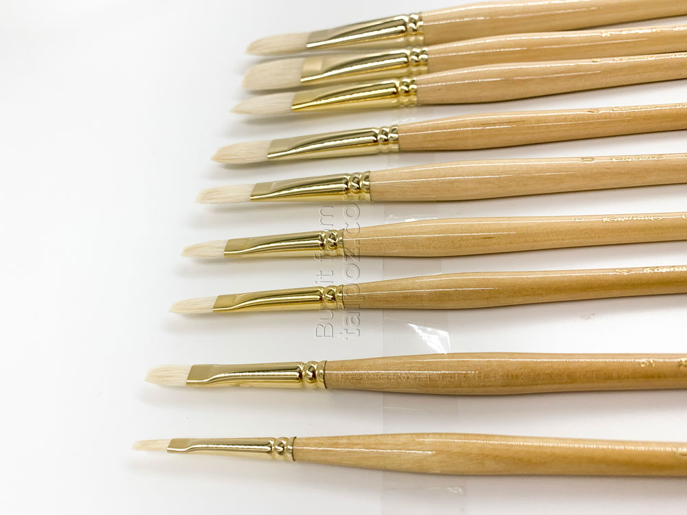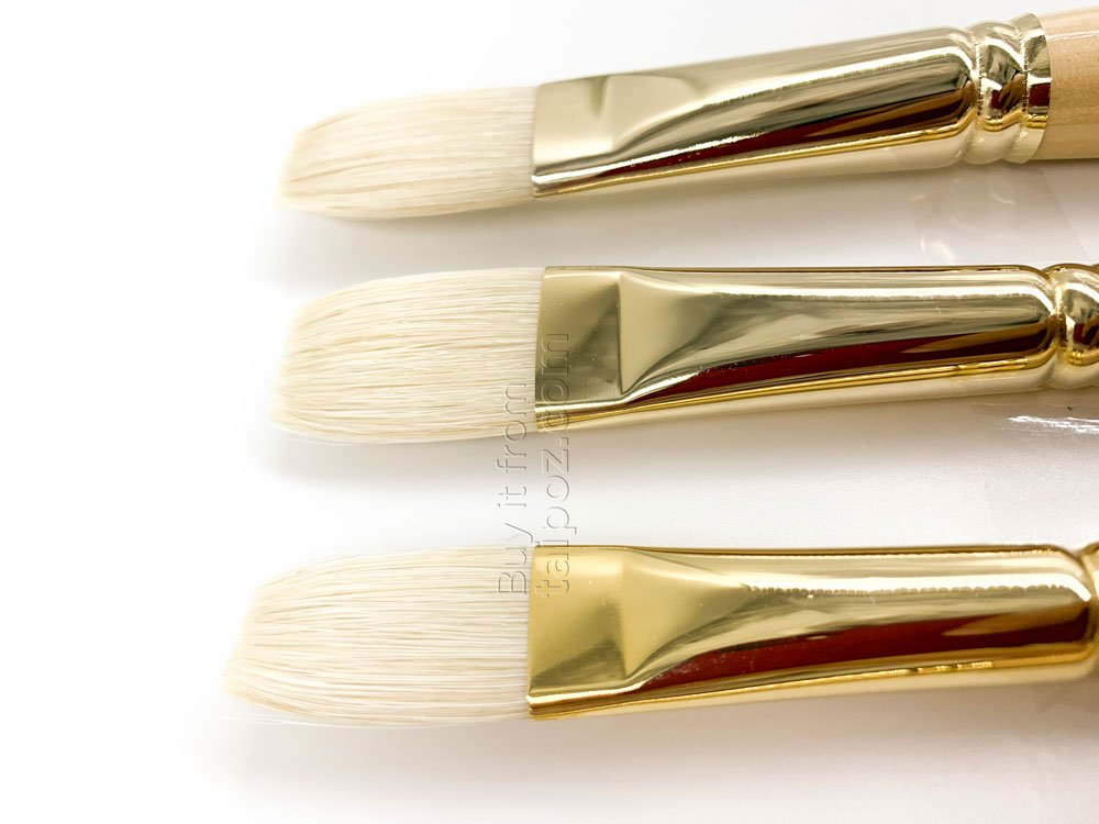 • Ứng dụng: Kiểu cọ bẹt lông dài, mềm và tải màu nhiều hơn cọ bẹt thân ngắn nên phù hợp để blend màu, làm mềm bề mặt màu, xử lý màu nền. Dùng cho vẽ sơn dầu và vẽ màu acrylic.