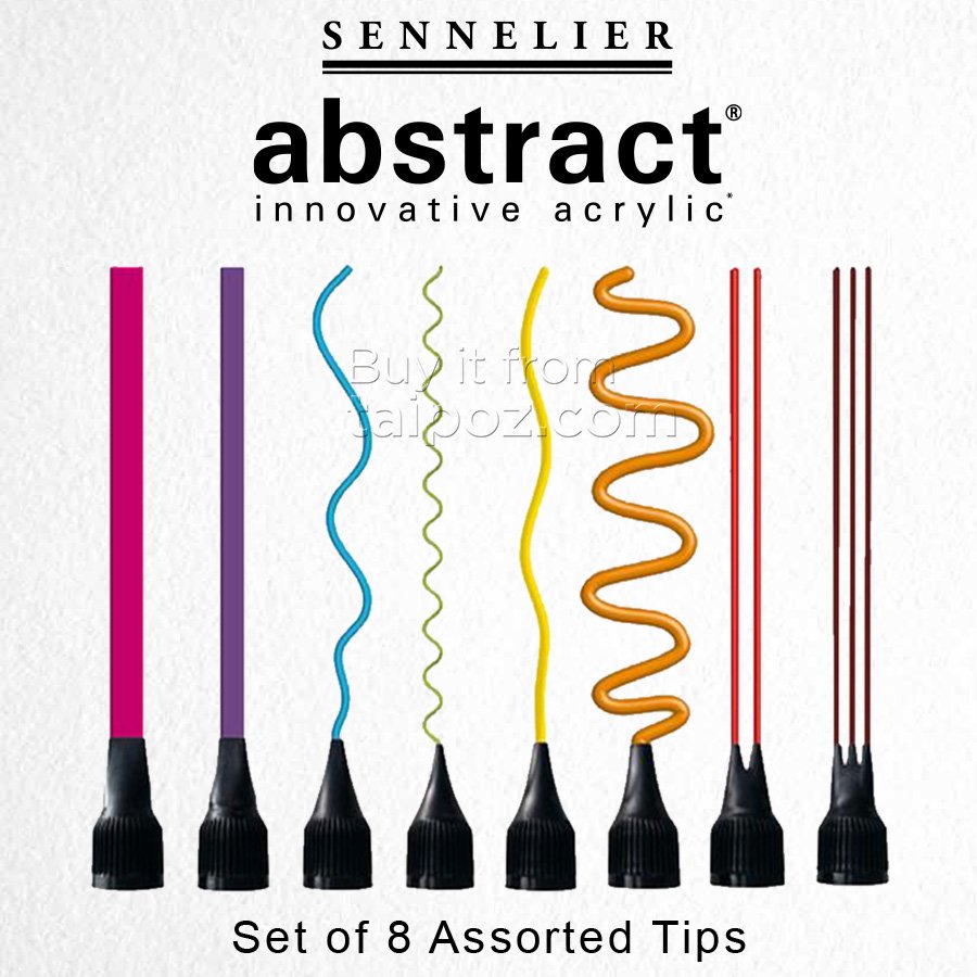 • 08 loại đầu vẽ nét khác nhau, khi sử dụng chỉ cần gắn trực tiếp vào đầu bóp của túi màu acrylic Sennelier Abstract Heavy Body, rồi vẽ màu trực tiếp lên toan vẽ.