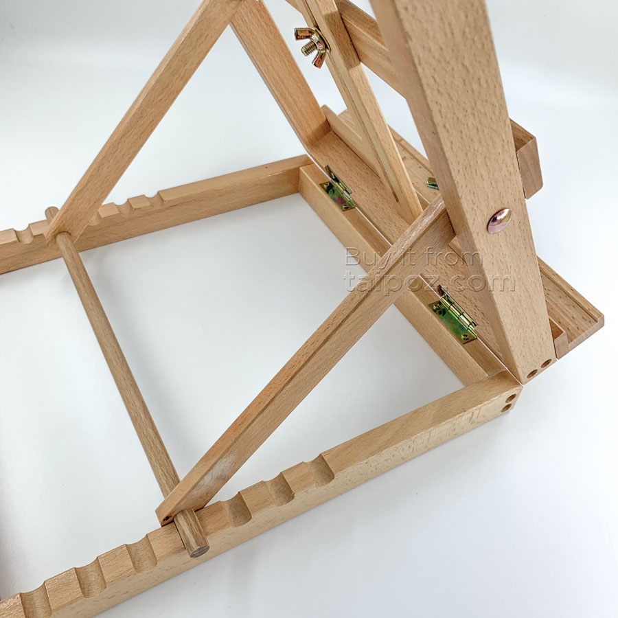 • Giá vẽ nhỏ gọn, cấu trúc kiểu chống sau. Có thể điều chỉnh được độ nghiêng. Sản phẩm phù hợp cho nhu cầu vẽ tranh khổ nhỏ với giá vẽ đặt trực tiếp trên bàn làm việc