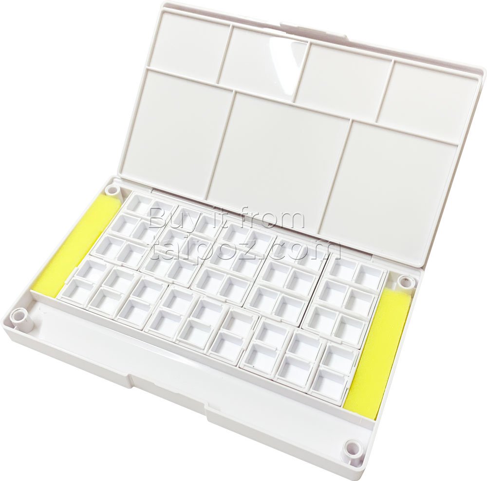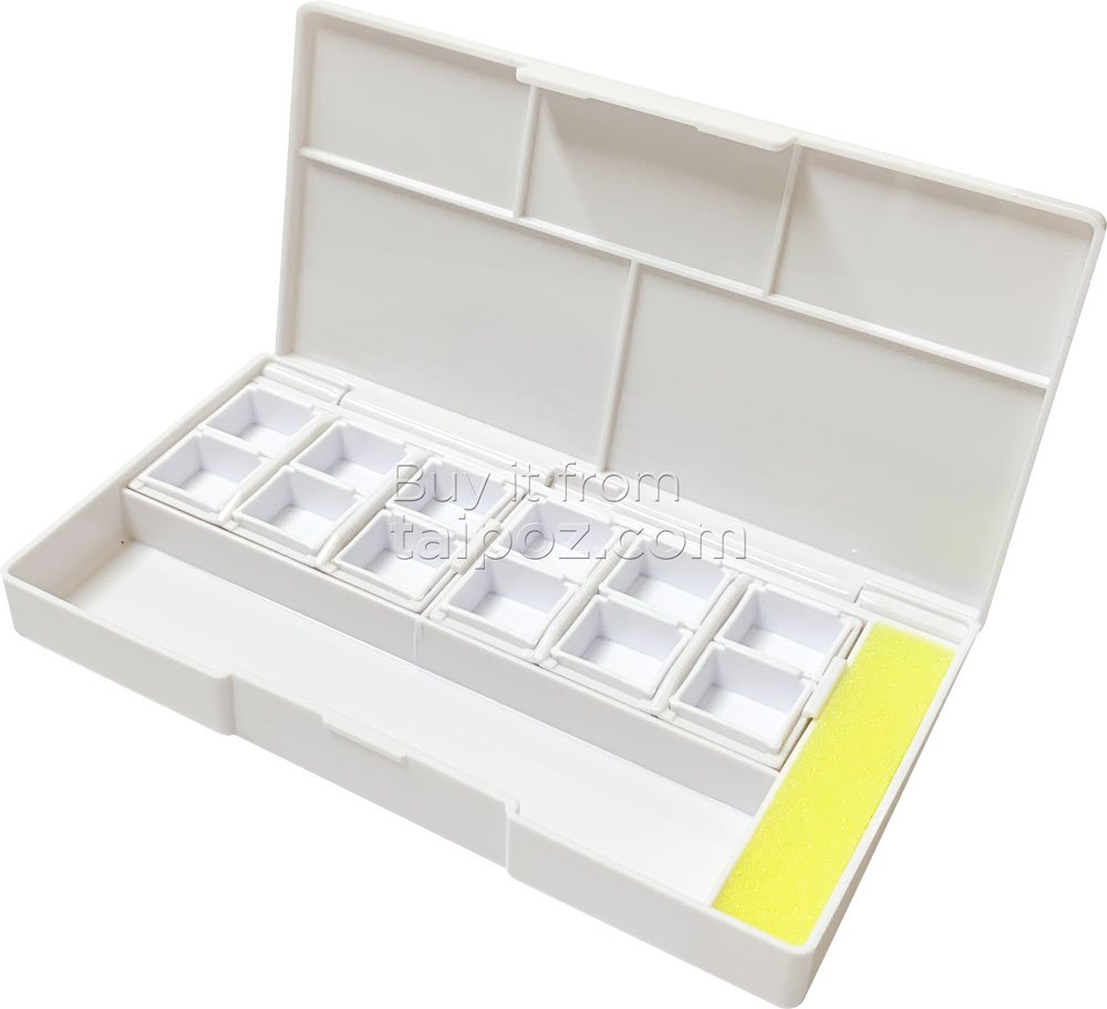 • Hộp nhựa đựng màu nước, giúp cất trữ màu nước chiết lẻ. Có luôn khay chứa cọ nước và bảng pha màu.