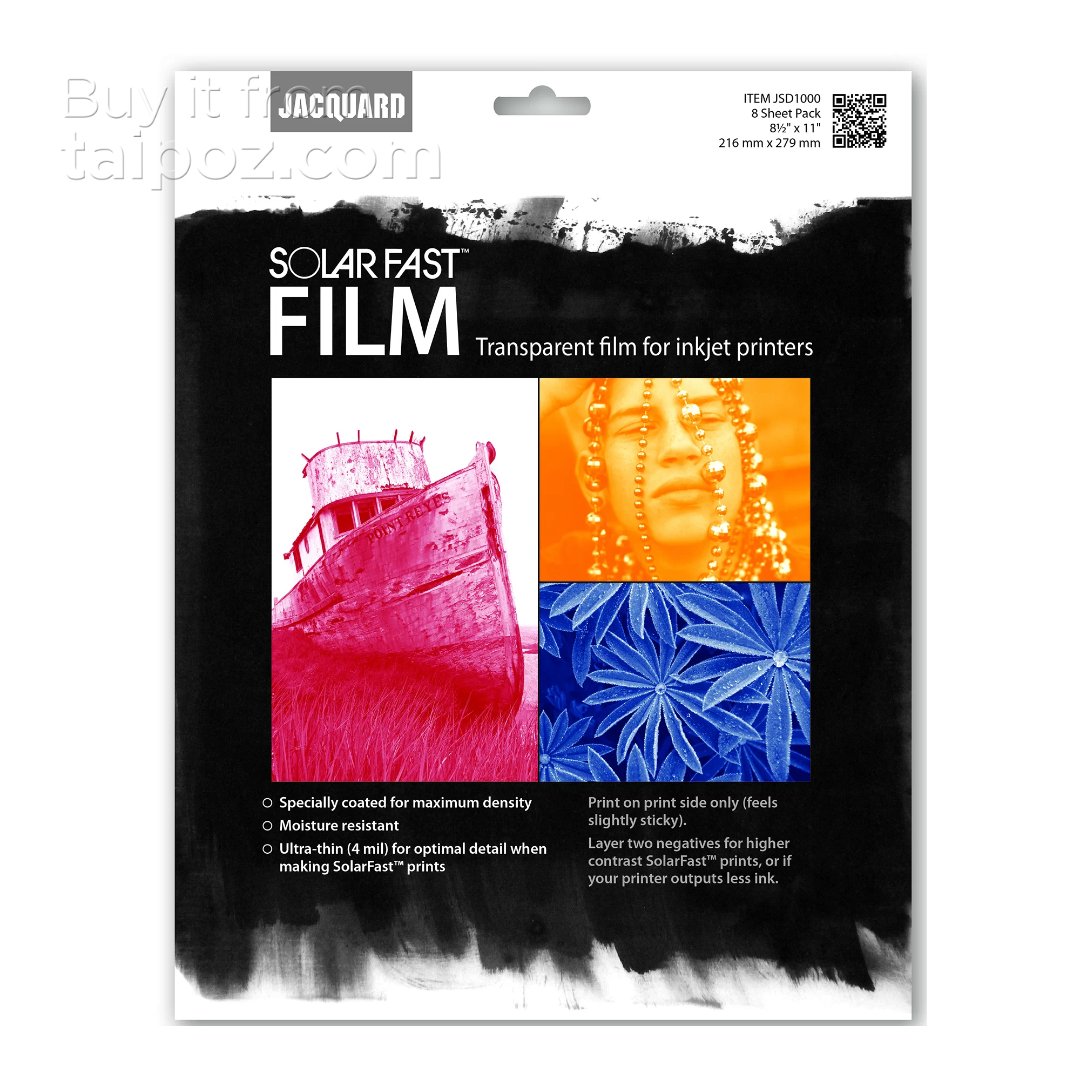 • Tấm film (phim) trong suốt chuyên dụng, dùng để in âm bản (negatives) ứng dụng cho các nhu cầu chế bản in lụa, Cyanotype và SolarFast.