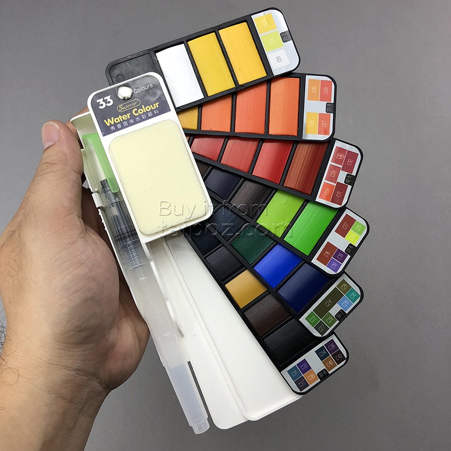 • Kèm theo bộ màu có thêm 1 cọ nước và một bảng pha màu.