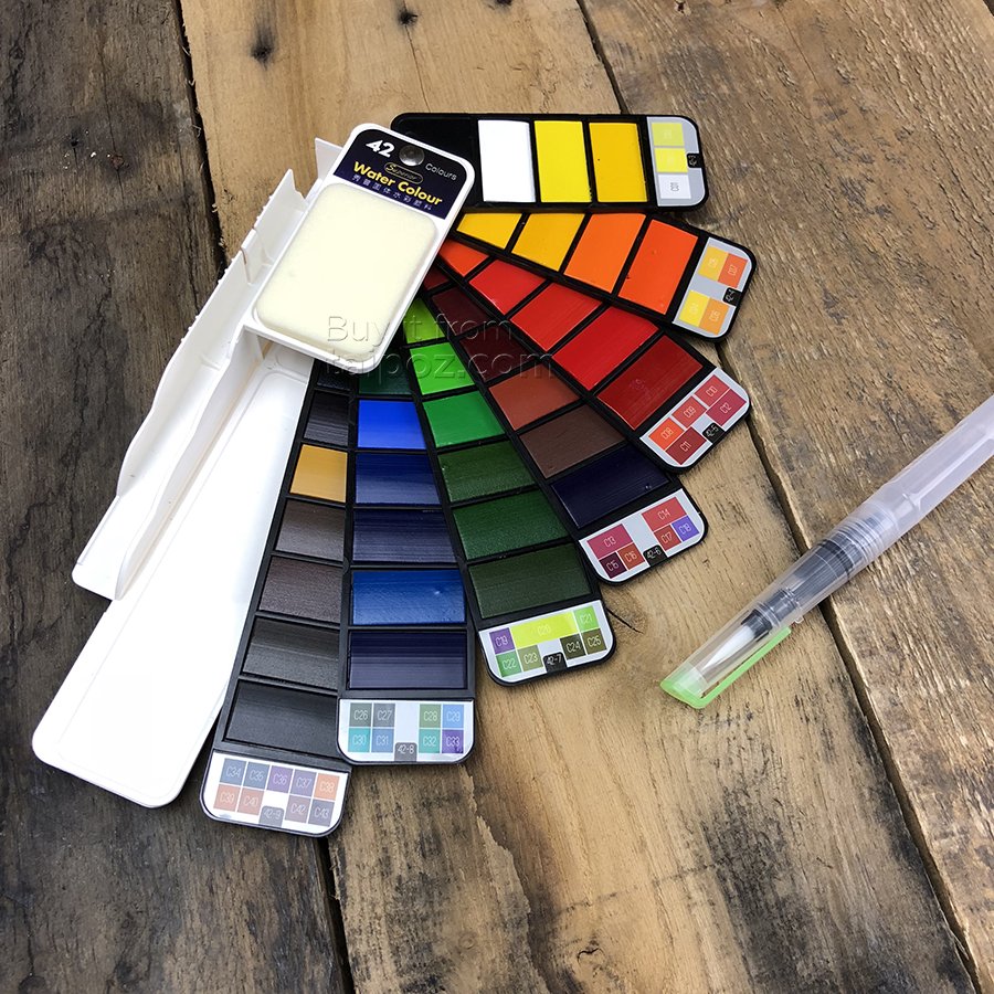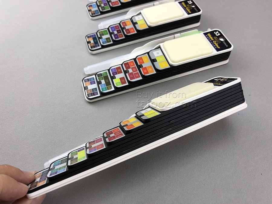 • Bộ sản phẩm màu nước độc đáo bởi thiết kế hình quạt, với các thẻ màu mỏng, mang lại cho bạn một sự gọn nhẹ, lý tưởng khi bạn mang theo đi vẽ ngoài trời hoặc đi học vẽ màu nước.