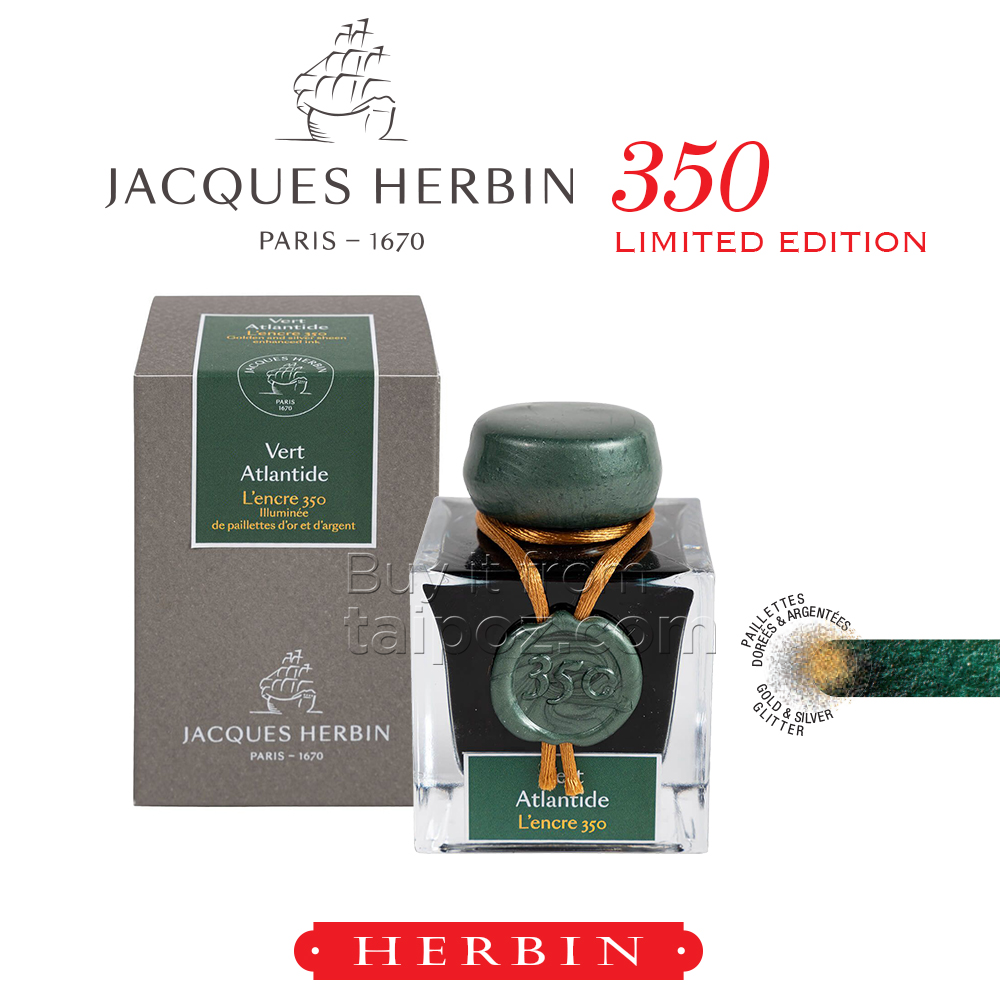 • Mực Jacques Herbin 350 sử dụng đồng thời cả nhũ vàng + nhũ bạc.
