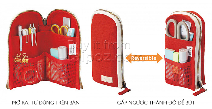 • Hộp đựng bút này đứng được trên bàn và có thể biến thành giá gác bút chỉ bằng động tác kéo khóa zip đơn giản. Không gian bên trong cho phép bạn đựng được nhiều bút, cùng nhiều vật dụng văn phòng nhỏ gọn khác như kéo, thước kẻ...